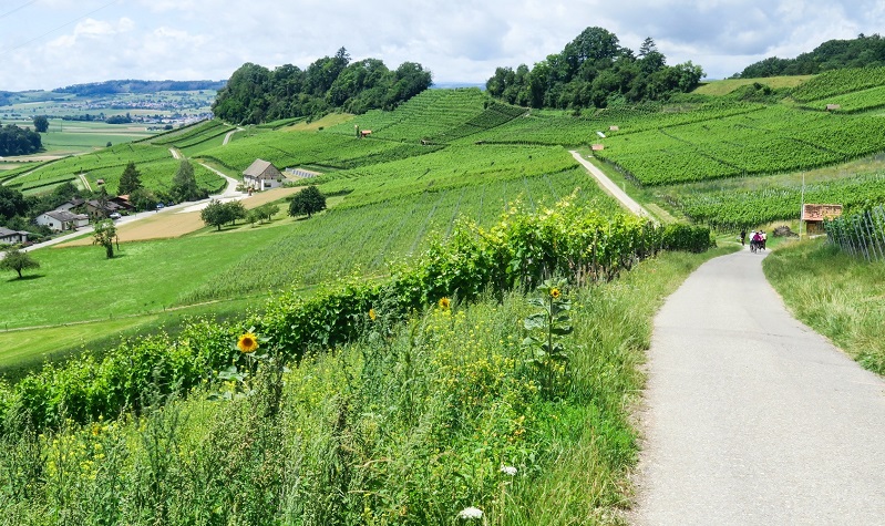 Mit unseren Elektrovelos fahren wir genussvoll durchs Blauburgunderland.